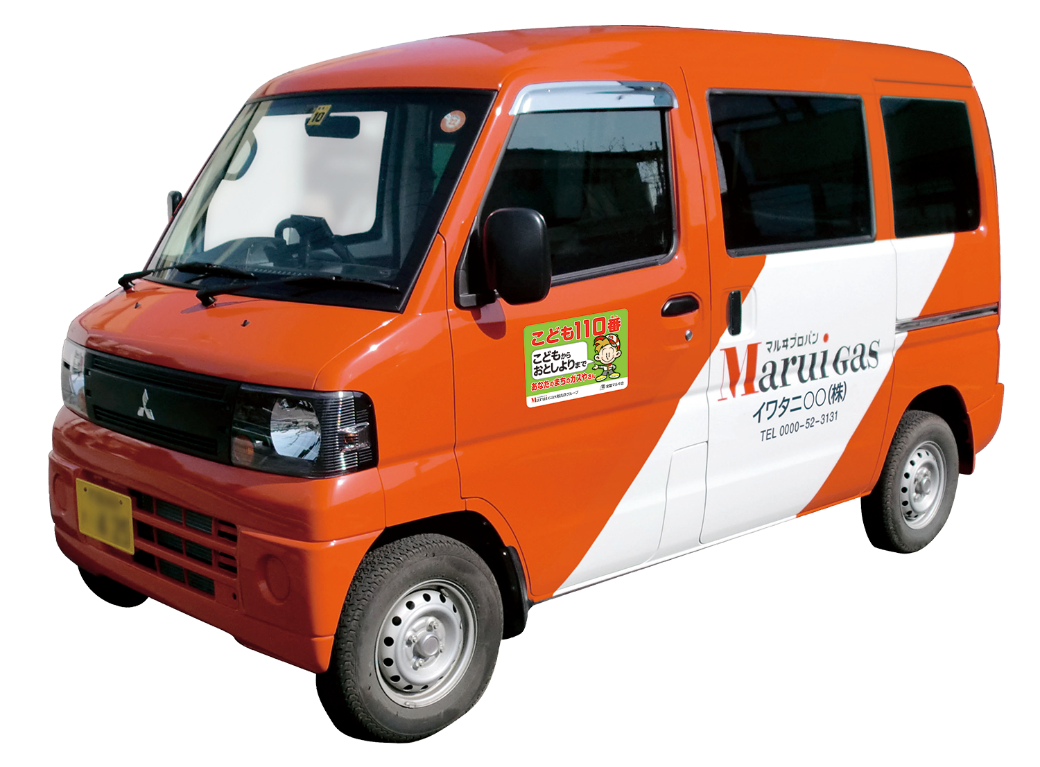 地域のボランティアの方などにより、すでに「こども110番の家」が広がっています。これと補完し合い、より防犯効果を高めるのが、「動く110番」です。当社の営業車、配送車が営業活動の中で、地域を巡回しながら、子供たちを見守ることで、子供たちの気持ちの安心感を高めることができます。マルヰガスグループは、地域社会の安心を願っています。